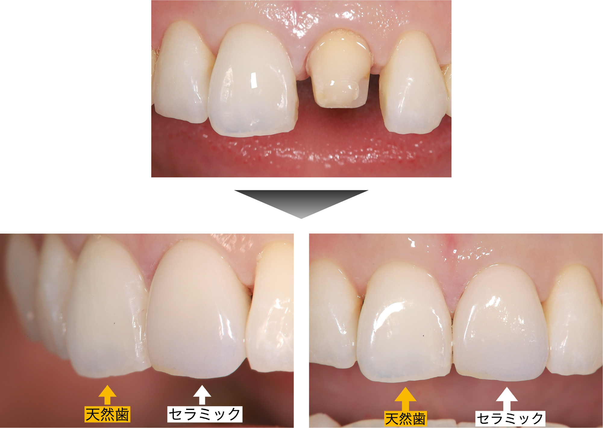 前歯1本を隣の透明感のある天然歯に合わせた審美治療