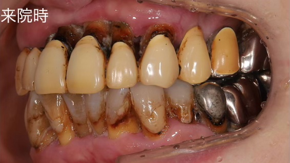 昔通っていた歯科医院での怖い治療体験がトラウマとなり、長い間受診を避けてこられた結果、上の歯は大きくグラグラし、噛むこともままならない状態にまで悪化していました。