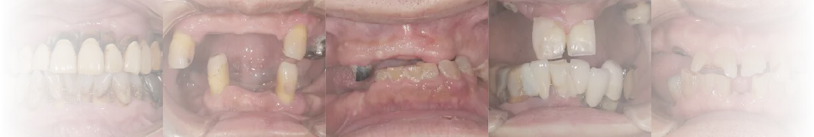 お口の中を拝見すると、かつて行われた治療の影響もあり、ほとんどの歯が保存困難な状況でした。