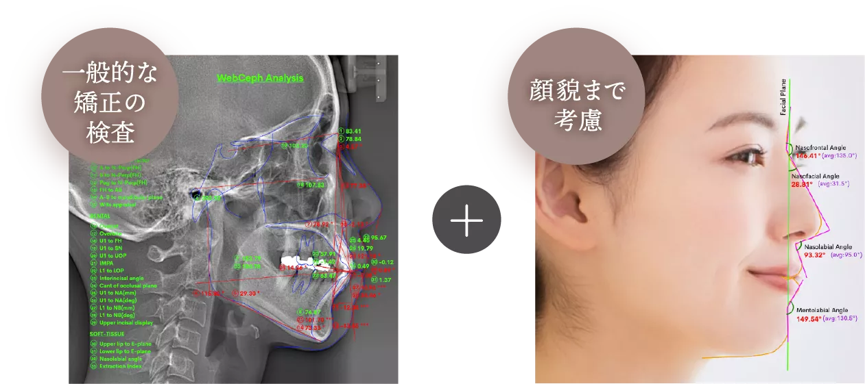 当院では、このWEBCEPH(ウェブセフ)を用いて多角的な診断を行い、事前に理想とするゴールの方向性を整理したうえで矯正治療を進められるようにしています。