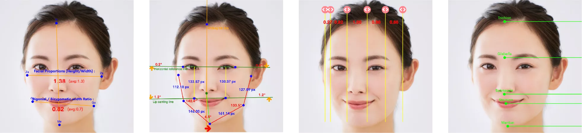 WEBCEPH(ウェブセフ)とは、セファロで撮影した情報をAIが分析してくれるソフトで、複数のデータをもとに顔全体のバランスを把握することに役立ちます。正面・横顔のバランスを数値として整理し、治療方針の検討やゴール設定の精度を高めるための補助情報として活用できます。