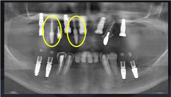 骨と結合が確認できた後、いよいよオールオン5の仮歯(プロビジョナル)を装着します。この段階で、残っていた歯や暫間インプラントはすべて除去し、最終設計に基づいたオールオン5の仮歯をセットします。