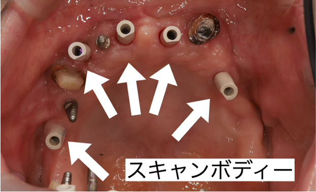 これをインプラントに装着してスキャンすることで、インプラントの位置・角度・深さをミクロン単位で正確に記録できます。