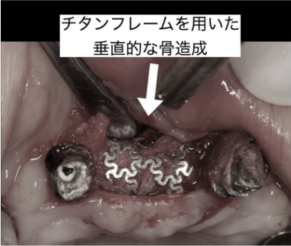 そのため、チタンフレームを使用したGBR法(骨誘導再生法)を採用しました。