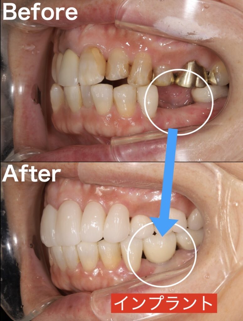 噛み合わせは全ての歯が連動して、形成されます。インプラント治療は歯がなくなったところにインプラント治療して終わりではなく、全体のことを考えて行う治療です。