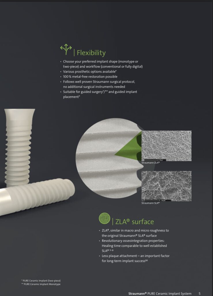 インプラントメーカーではブランドシェアNo1のストローマン社のピュアセラミックジルコニアインプラントを当院では使用しております。