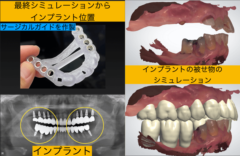 私たちはまず、理想的な噛み合わせをデジタルで設計し、ゴールを明確に設定しました。そして、そのシミュレーションに基づいて精密にインプラントを埋入。すべての治療が完了するまで、1年もかかりませんでした。