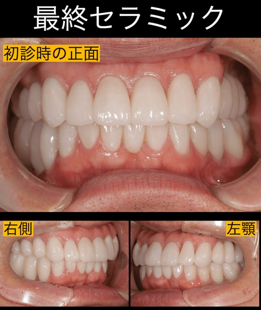 すべての治療が終了したとき、患者様の表情は見違えるほど明るくなり、「本当にやってよかった」と笑顔でお話しくださいました。美しく整った口元と、しっかり噛める喜びを手にされたその姿は、私たちにとっても大きな感動でした。