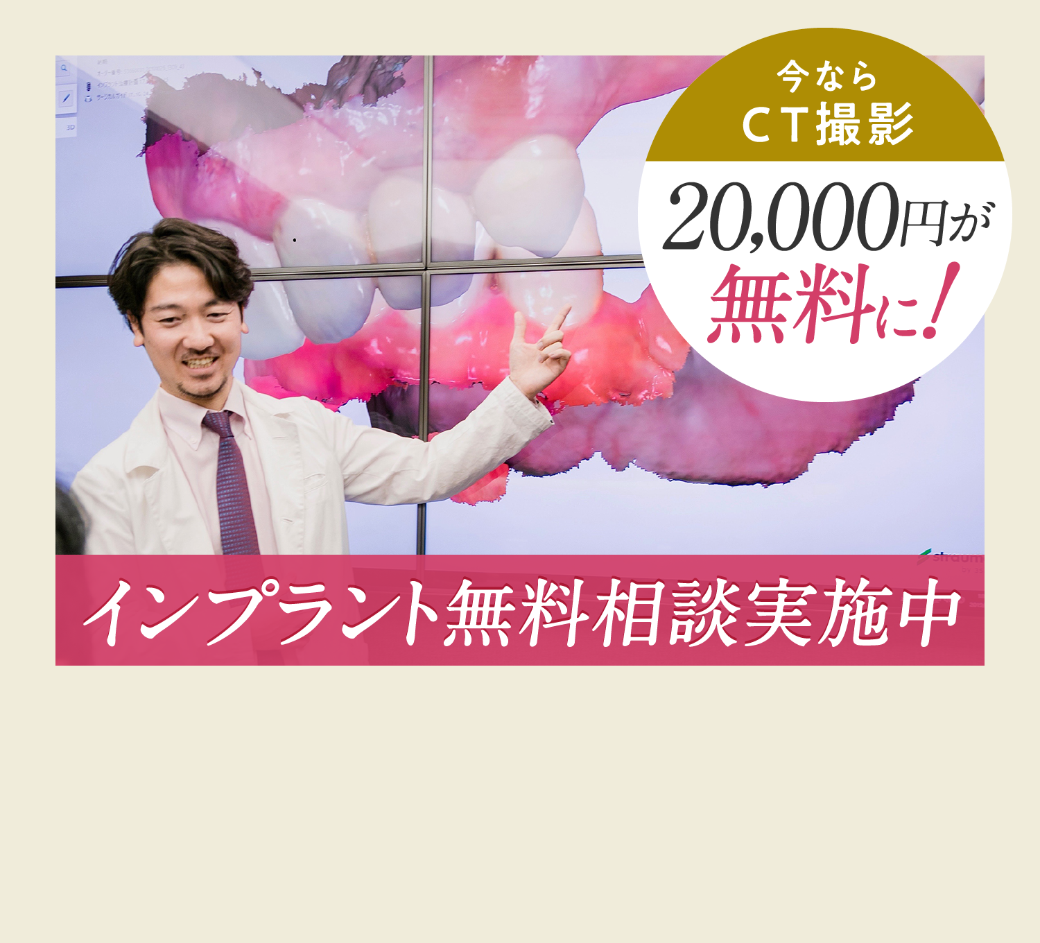 帝塚山スマイルデザインクリニック院長・岩下が、豊富な症例経験を踏まえて分かりやすく解説いたします。これからインプラント治療を検討される方にとって、安心して選択できる材料となれば幸いです。なお、当院では無料カウンセリングも行っておりますので、不安や疑問をお持ちの方はどうぞお気軽にご相談ください。