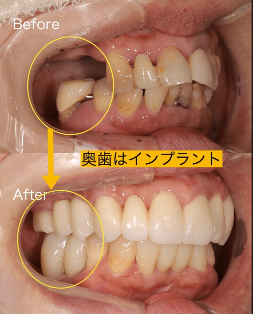 インプラント2本+ブリッジで奥歯3〜4本を補うケース