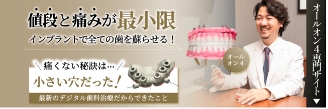オールオン4は少ないインプラントの本数で多数歯を支えることが可能です。