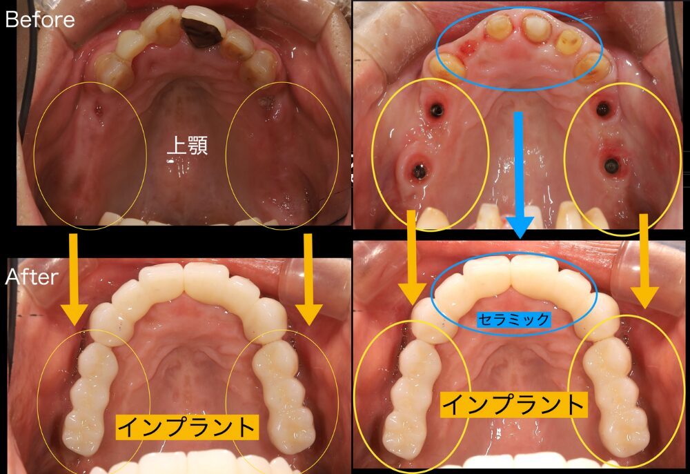 ただし、インプラント1本あたりの負荷は大きく、4本のインプラントで12本の歯を支えます。噛み合わせや骨の状態を精査する必要がありますが、条件が揃えばこれほどインプラントの本数が少なく綺麗に歯を入れるシステムは他にありません。