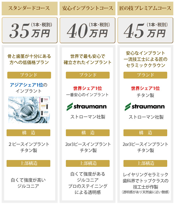オペ、上部構造の費用も含んだインプラント1本あたりの価格です。